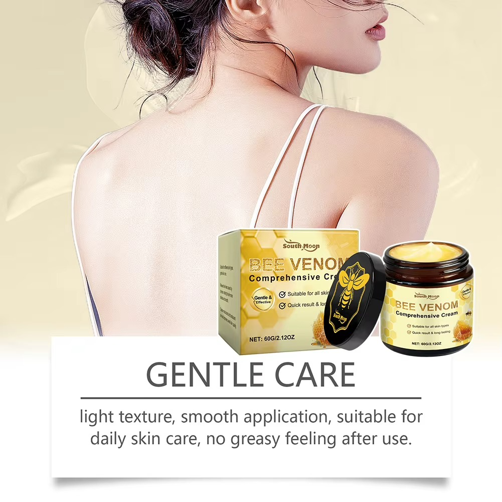 Skin cream: Our bee-venom complex cream is formulated with bee-venom extract and natural plant essences to deeply moisturize the skin and effectively reduce the appearance of scars, fine lines and other blemishes.